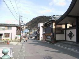 パワーストーン・サワキューから東方向を見たところ。 写真の右が菊屋旅館、左に当店駐車場があります。 車の場合、写真奥の方から来ることになります。 ![]() |